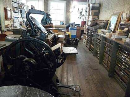 Print shops of this type originated common phrases like “uppercase” and “lowercase” as the letters were once kept in two separate cases. “Mind your p’s and q’s” came about because the two lowercase letters are mirror images of the other.