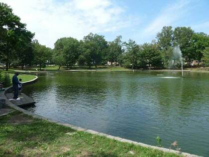 Bowne Park is a somewhat large park in Murray Hill, Queens, northeast of Flushing. Shaded paths wind around a central lake and there’s a playground on the eastern end of the park, which is between 29th and 32nd Aves. and 155th and 159th Sts. The Bowne this park is named for is Walter (1770-1846), who served as NYC mayor from 1828-1832. Walter Bowne’s summer residence stood on the site until it burned down in 1925 and the City acquired the property for parkland.